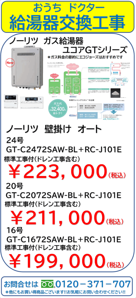 一軒家にお住まいの方におすすめ!給湯器交換工事!