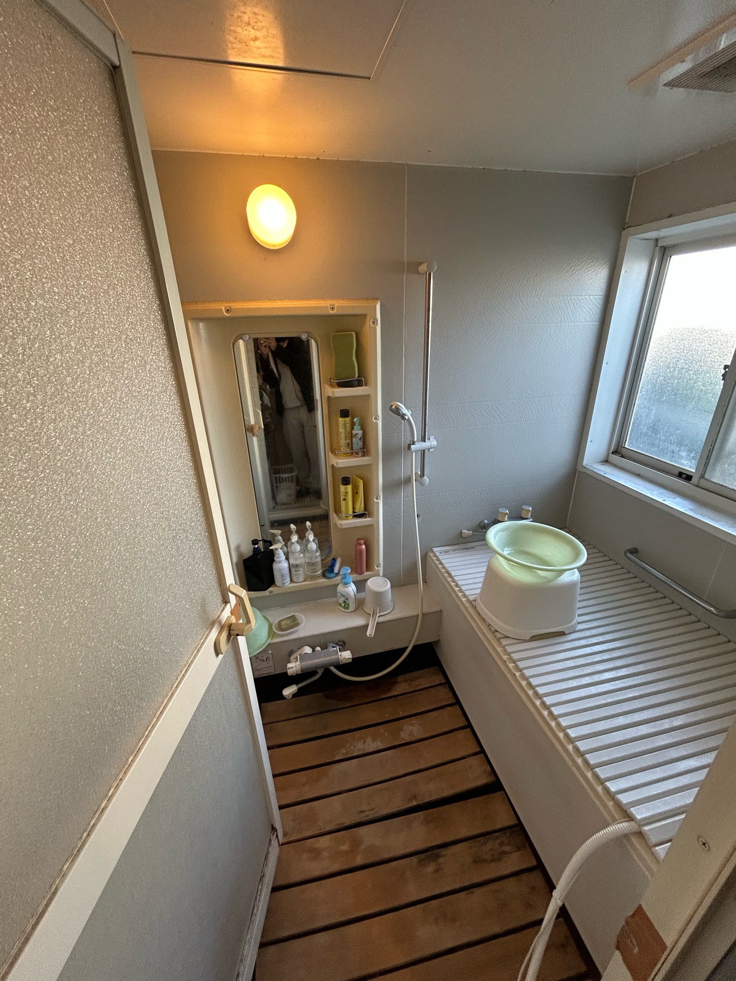 - 今回寒さ対策がポイントでしたのでユニットバスには壁・天井裏の断熱、浴槽・床の断熱、窓の断熱(内窓)に加え暖房機を設置することで冬場安心してお風呂に入れるようになりました。