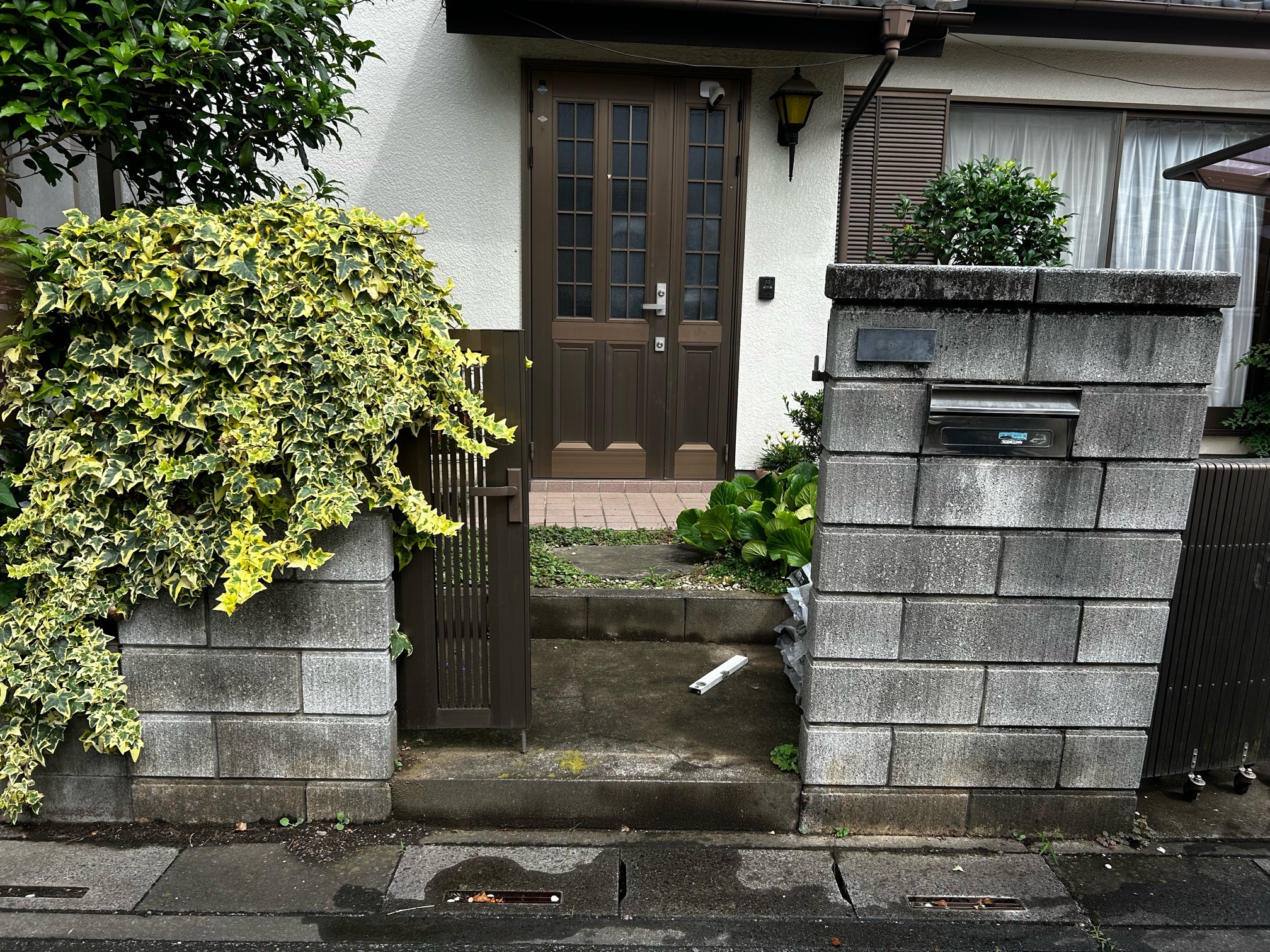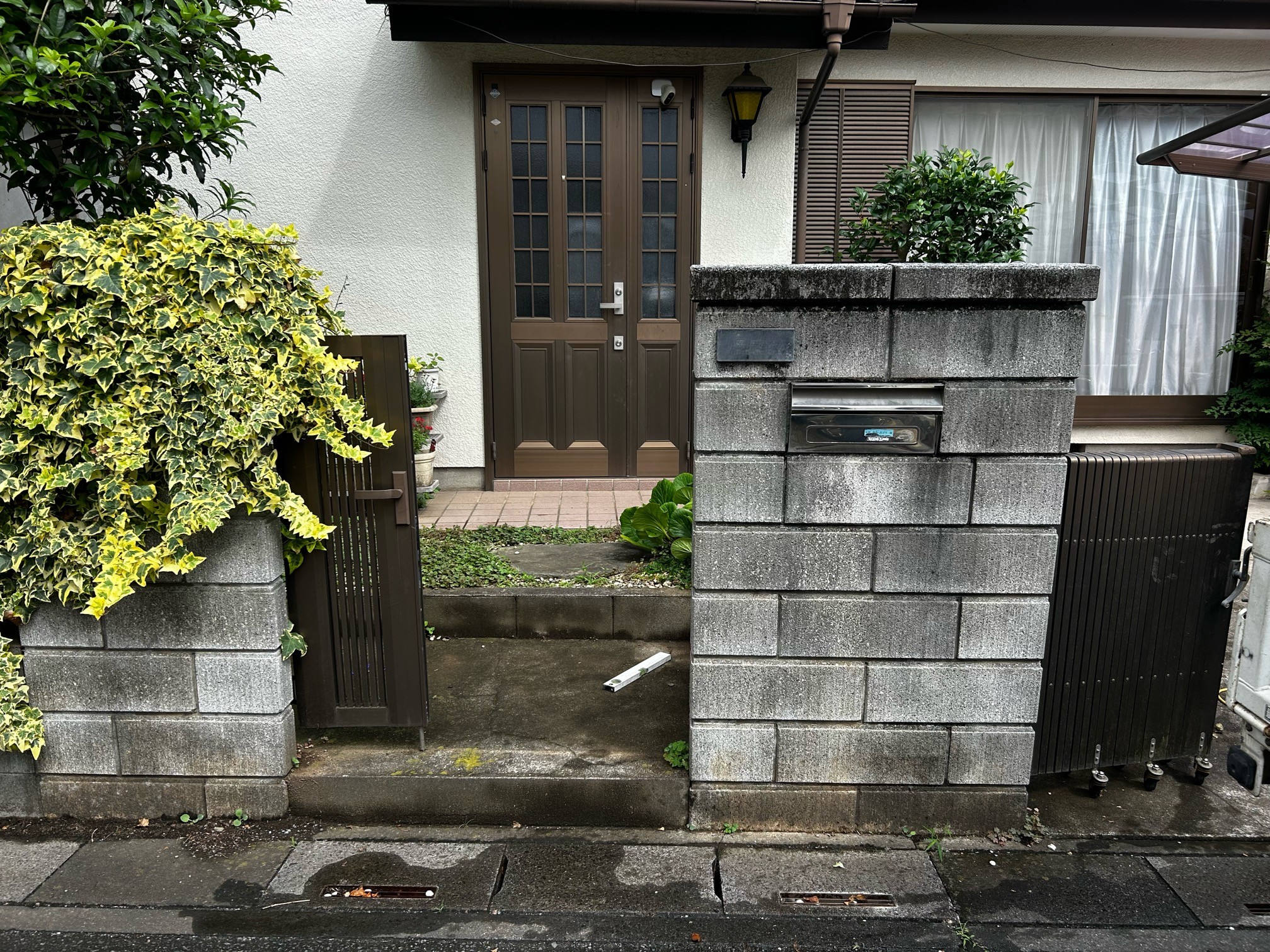 - 門扉の右側にあるブロック塀が道路側へ傾いており以前から気になっていたものの最近さらに傾きがひどくなってきた為、
